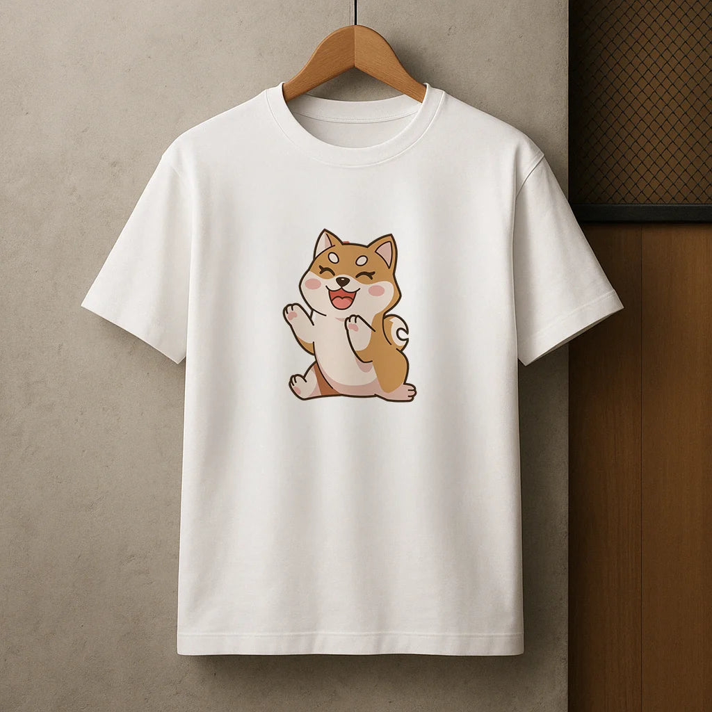 T-shirt Blanc Chien Chibi Joyeux - Design Mignon et Minimaliste